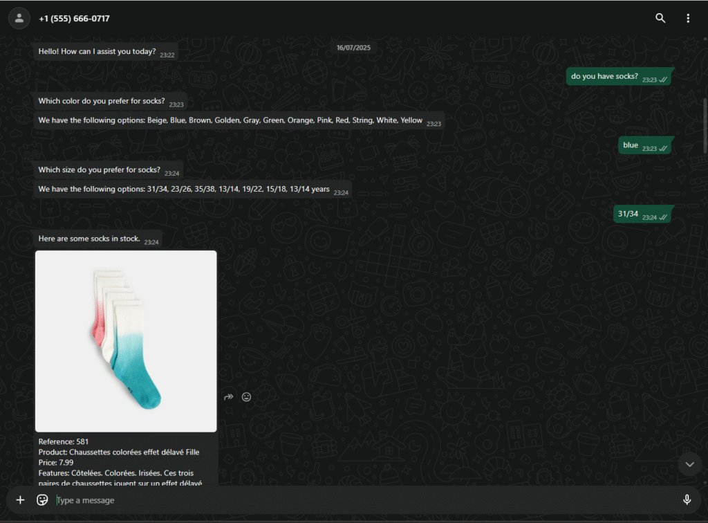 Wally understands precise customer requests—like brand, color, or size—and can guide shoppers to the exact product they want. Whether it’s Nike white shoes in size 42 or asking about preferred colors and styles, Wally makes product discovery effortless
